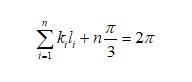 假設二維干泡沫中的任一氣泡如圖3b所示,氣泡的邊數為n,從a點開始,再回到a的邊長分別標記為l1到ln,每邊所對應的曲率為k1到kn(Plateau第一定律)?,F在假設有一點從a點沿著邊向b運動,到b點時,所走的路徑為l1,轉動的角度為這條邊所對應的圓心角(向外為正,向內為負值),為k1*l1。此時要想繼續沿著邊運動,需要向內轉動π/3角度(根據Plateau第二定律),如圖3b所示。轉動后繼續運動,直到到達原來的點a。此過程,n條邊總共在頂點處轉動的角度為nπ/3,在邊上轉動的角度為