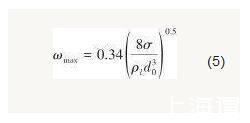 當含表面活性劑射流離開噴嘴后,其表面會形成不穩定波。射流表面不穩定波隨著射流的前進不斷發展并最終導致了液體射流的破裂。從圖5中可以看出,實驗工況下,射流表面波動為正對稱波;從圖6中可以看出,射流破裂長度隨著液體射流速度的增大而增大。因此,可以認為在實驗工況下,含表面活性劑射流處于Rayleigh模式。在此射流破裂模式下,射流表面最不穩定波的增長率可以表示為[18]: