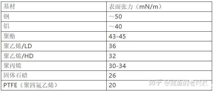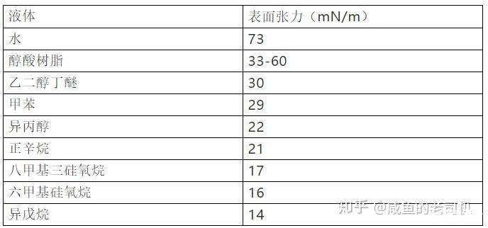 常見物質的表面張力狀況