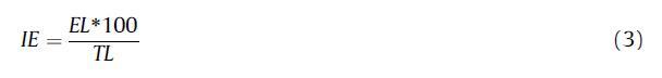 拉伸強(qiáng)度(TS)和斷裂伸長率(%E)使用智利官方標(biāo)準(zhǔn)方法(NCh1151,1999)測定,該方法等效于ISO R1184-1970標(biāo)準(zhǔn)方法。薄膜樣品被切成10毫米?50毫米的條帶,并使用雙夾鉗以30毫米的間隔以20毫米/分鐘的測試速度進(jìn)行測試。記錄曲線載荷與伸長的關(guān)系,直到達(dá)到斷裂伸長率。TS以MPa表示,并通過將最大載荷(N)除以橫截面積(m2)計(jì)算得出。最大斷裂伸長率或%E是通過將斷裂時(shí)的伸長率除以樣品的初始標(biāo)距并乘以100來確定的。報(bào)告的TS和%E值是對每種類型的樣品進(jìn)行的至少四次測量的平均值電影。