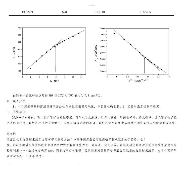 表面張力法和電導法對比測定表面活性劑臨界膠束濃度