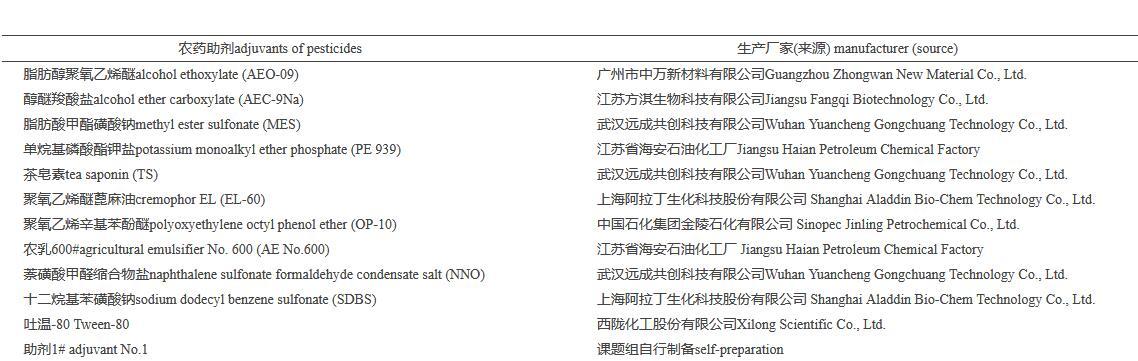 目前,助劑廣泛應(yīng)用于日用化學(xué)工業(yè)、食品、環(huán)境、衛(wèi)生、農(nóng)業(yè)和新材料等各個(gè)領(lǐng)域,被人們形象地譽(yù)為“工業(yè)味精”[31-32]。助劑的應(yīng)用大大地提高了農(nóng)藥施用率,減少環(huán)境污染;然而,由于國(guó)內(nèi)各農(nóng)藥制劑和助劑生產(chǎn)企業(yè)生產(chǎn)技術(shù)及工藝存在差異,致使市場(chǎng)上的助劑和農(nóng)藥制劑的品質(zhì)不一,不同種類(lèi)甚至同種助劑的性質(zhì)和施用效果也不同,大多數(shù)農(nóng)藥制劑在推薦劑量下其藥液并不能很好的潤(rùn)濕靶標(biāo)植物[20],因此,合理選擇和安全使用助劑尤為重要。
