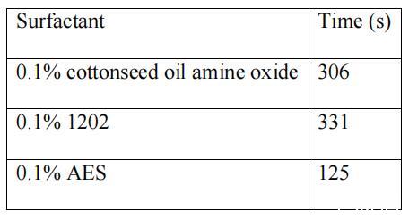 兩種不同的液體短語不能混合在一起的現象是 由于表面活性劑的作用而能夠混合的稱為乳化。 這 乳化機理可以解釋:表面活性劑的兩親特性 使其易于在油水界面吸附和富集,從而減少界面 張力并改變界面狀態,所以"油"和"水"這兩個詞可以 不能混在一起,可以混在一起。 蓖麻油酰胺氧化胺與棉籽油酰胺的水分離時間 氧化胺列于表3中。