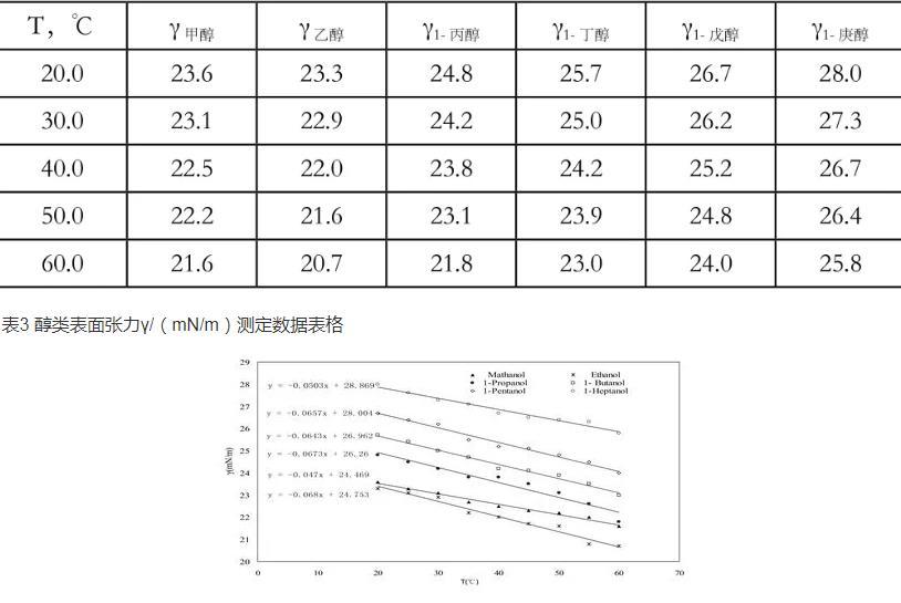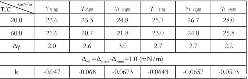 表3醇類表面張力γ/(mN/m)測定數(shù)據(jù)表格